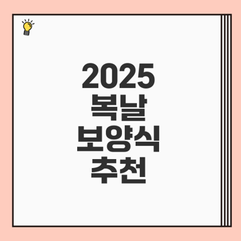 2025년 복날, 다양한 보양식을 통해 가족과 함께 소중한 시간을 보내고, 건강을 챙기는 여름을 만들어 보세요. 몸을 든든하게 채워 더위에 맞서 힘차게 여름을 이겨내는 것이 중요합니다!